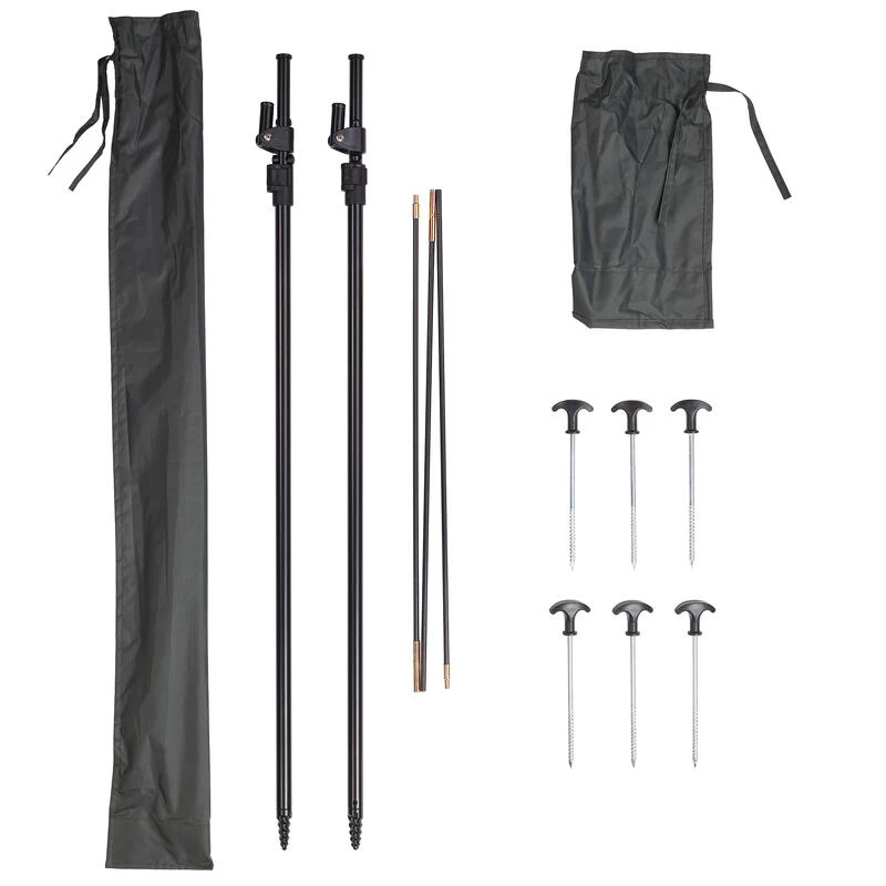 – Livré avec: 2 mats tempête (acier), un sac de transport et les accessoires (6 sardines et 2 accroches cannes sur le brolly)