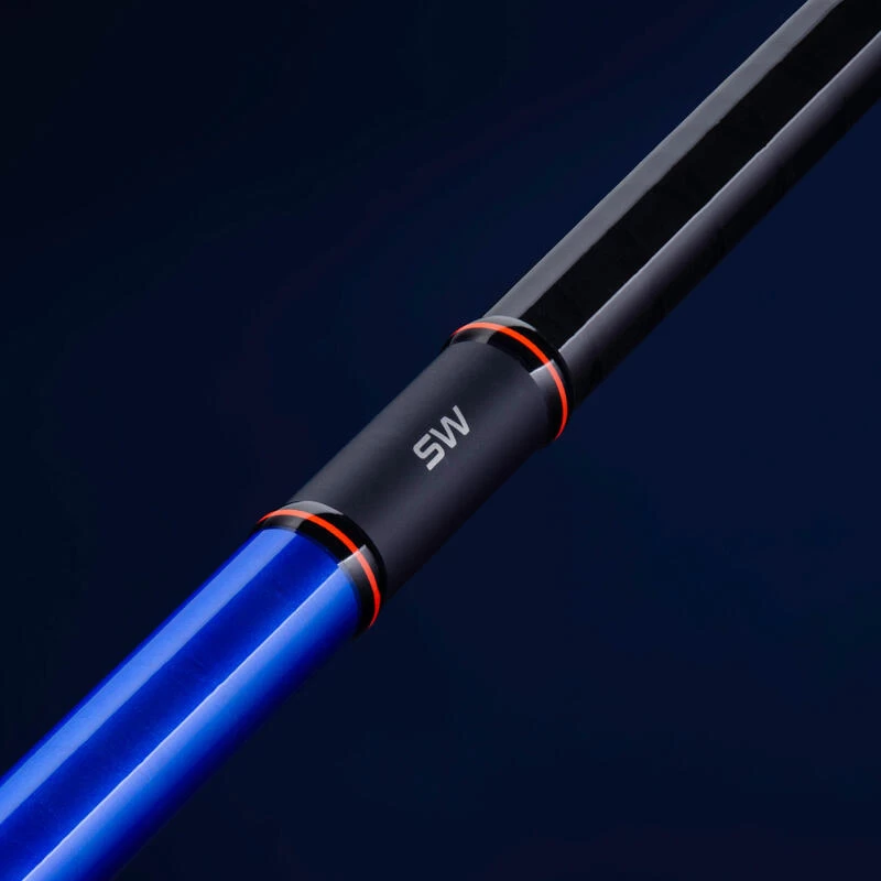 Nous avons conçu cette canne en y adaptant le porte moulinet au meilleur endroit afin de garantir le meilleur équilibrage possible avec utilisation d’un moulinet 3000/4000
