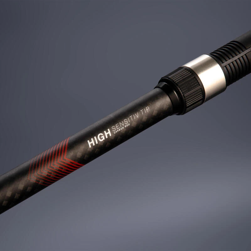 Notre équipe de conception a développé cette canne pour pêcher en surfcasting en eaux calmes.Cette canne de 3,90m est dotée d’un scion réfléchissant visible et sensible qui permet de mieux détecter les touches.