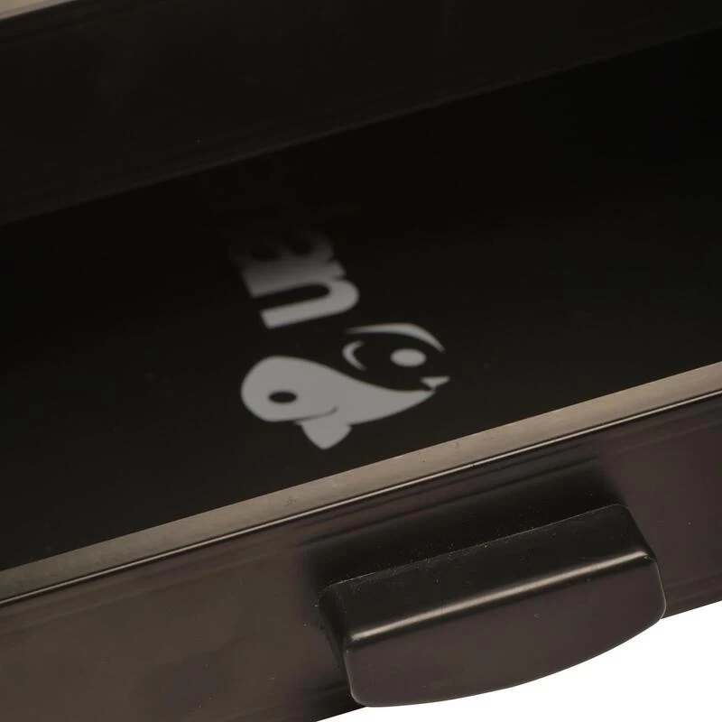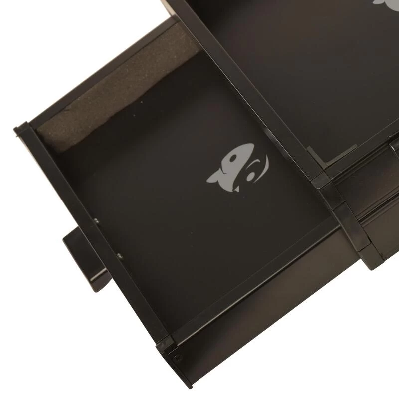 Poignée ergonomique sur le tiroir pour faciliter l’accès en action de pêche.
