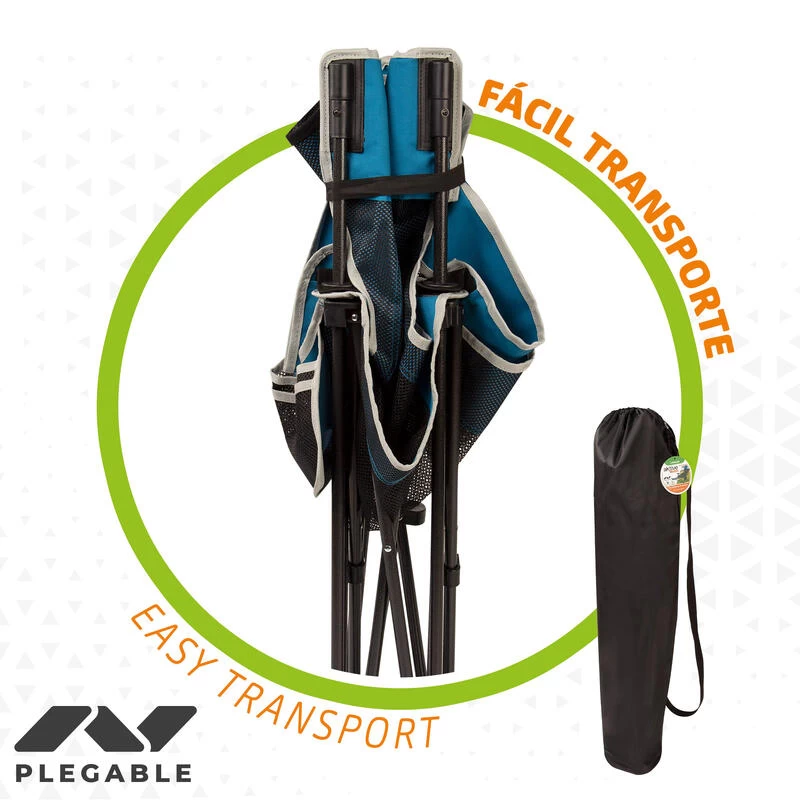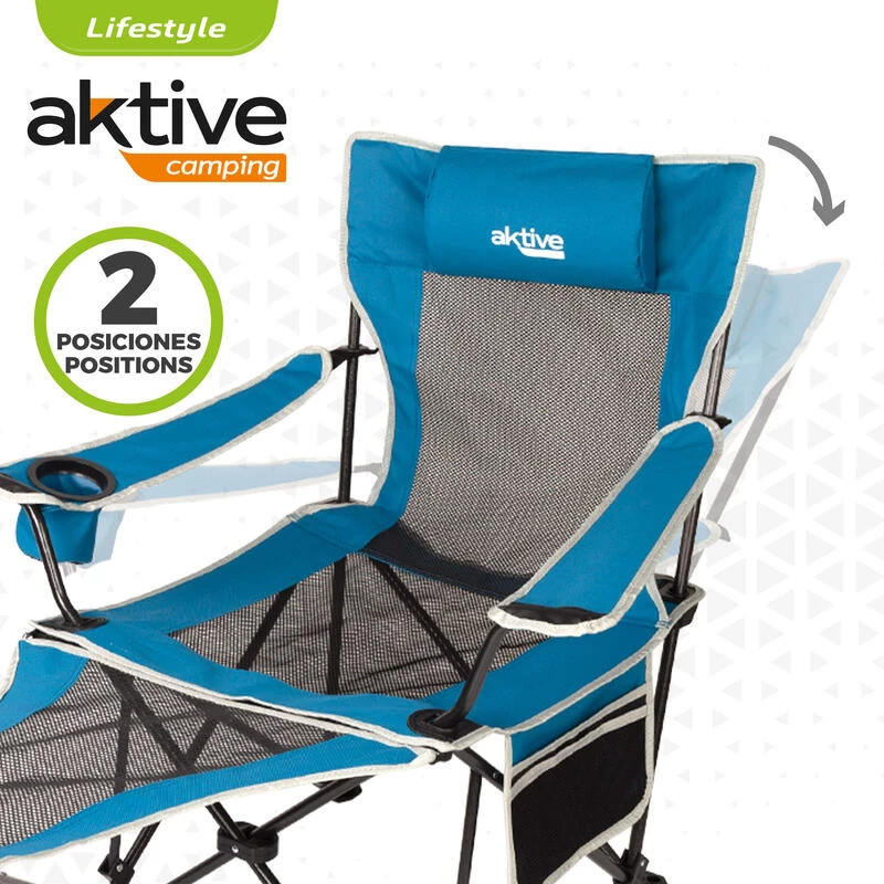 Chaise de camping pliante bleue et noire qui se transforme en chaise longue pour réinventer vos sorties en plein air Aktive Camping