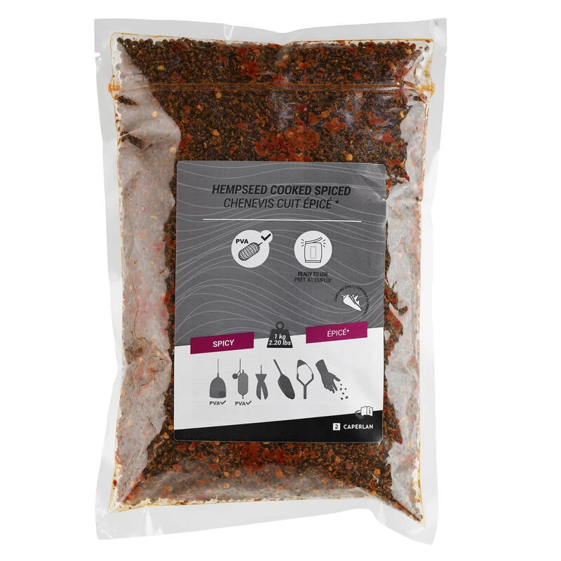 Ces sacs de 1kg de chènevis épicé (graines cuites) apportent une solution aux carpistes à la recherche de gain de temps et d’efficacité.Le chènevis est un véritable aimant à carpe. Comme le maïs, il s’agit d’une valeur sûre tout au long de l’année et sur tous les types d’eau. Sac de 1kg de chènevis cuit.