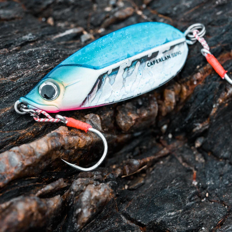 Nous avons conçu ce jig pour la pêche en profondeur ou fort courant.Sa forme asymétrique lui permet d’avoir une nage qui descend lentement, type feuille morte, pour pêcher les carnassiers marins proche du fond.
