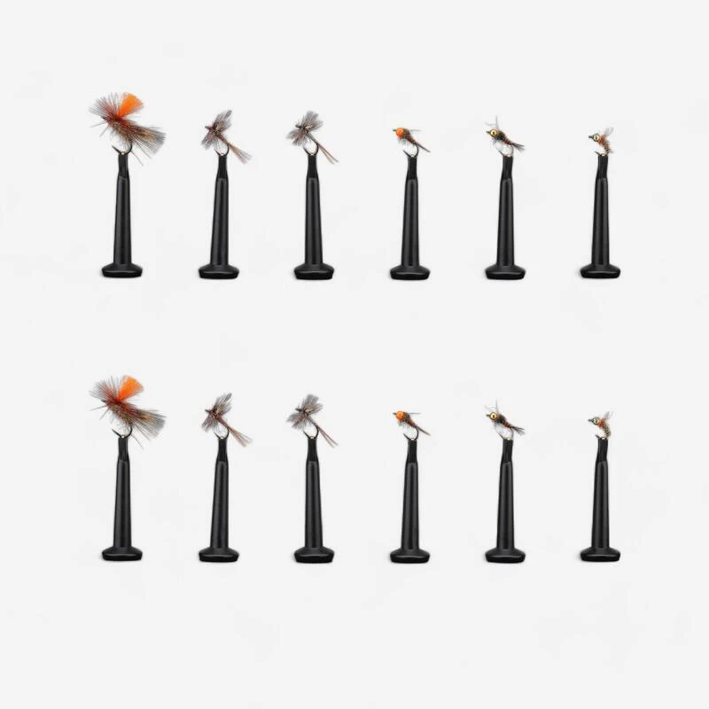 Notre équipe de pêcheurs a développé ce pack de mouches sèches et de nymphes pour la pêche à la mouche des truites, ombres et poissons blancsSélection de mouches sèches et de nymphe permettant de prospecter efficacement les rivières de type alpine ou rapide. Chaque modèle est proposé en 2 exemplaires