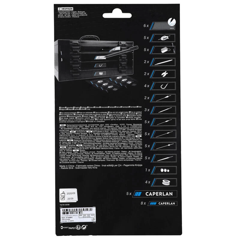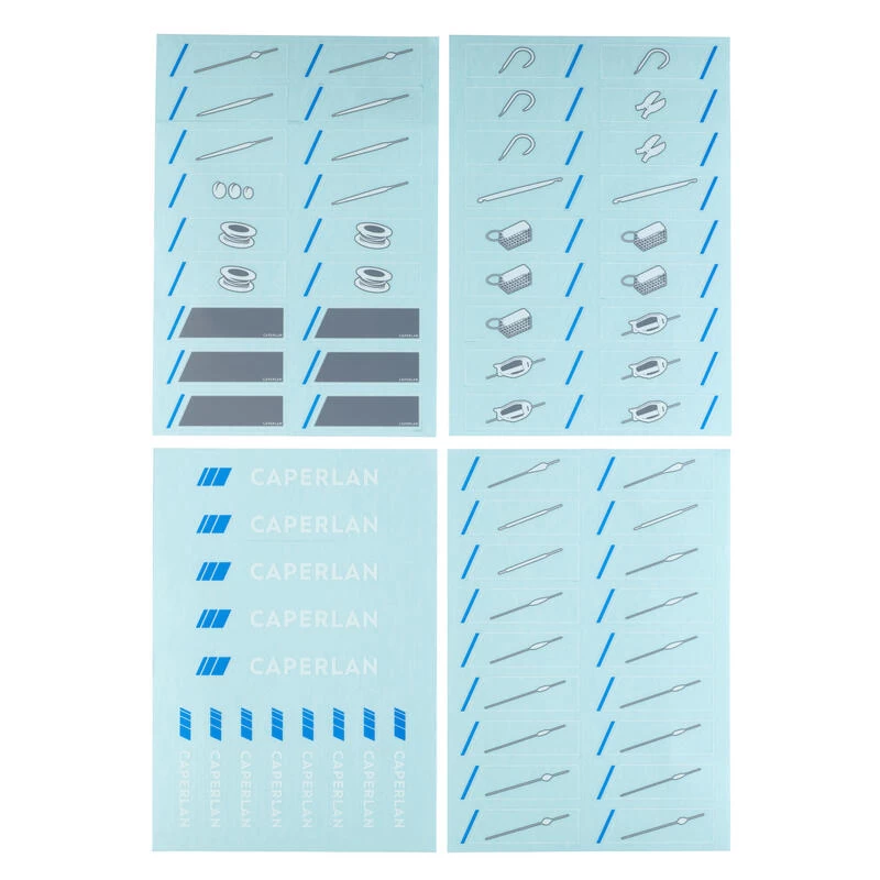 Stickers développés par notre équipe de conception pour pouvoir identifier rapidement le contenu de tous les casiers de sa station de pêche au coup.Lot de 4 planches de stickers permettant de bien renseigner chaque casier de sa station ou de ses boites de rangement.